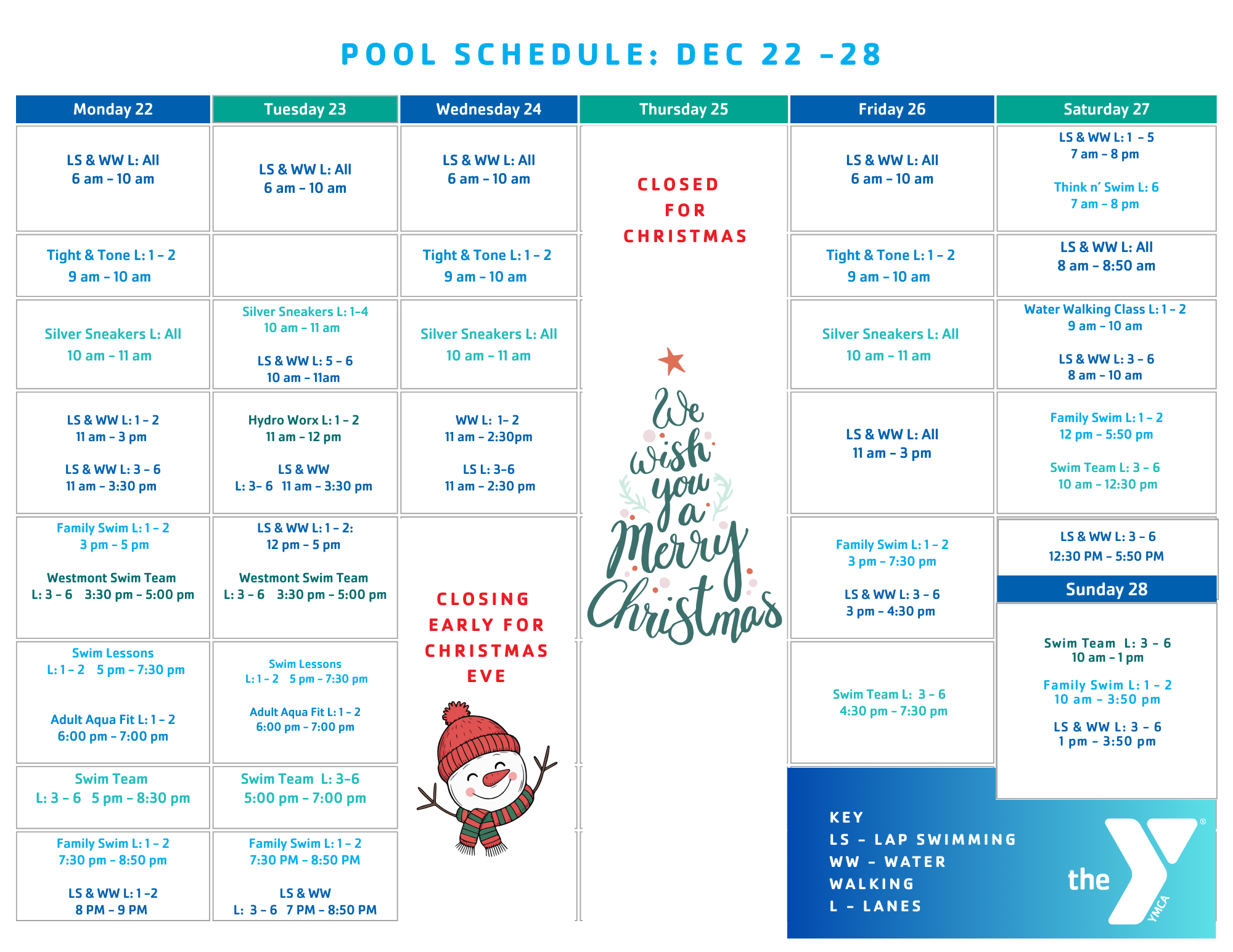 Printable Pool Schedule 12.22 - 12.28